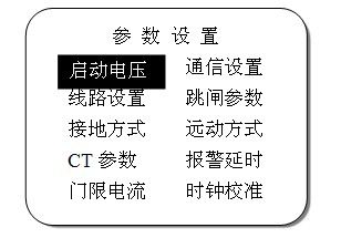 本菜單設(shè)置選線的啟動電壓值,按上下方向鍵移動光標選擇需修改的參數(shù)項,按確認鍵進入修改狀態(tài),此時按方向鍵修改參數(shù),修改后按“確認”鍵保存,按“取消”鍵不做保存。