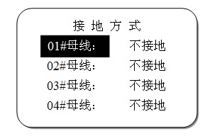 本菜單設(shè)置各段母線的接地方式,按上下方向鍵移動光標選擇需修改的參數(shù)項,按確認鍵進入修改狀態(tài),此時按方向鍵修改參數(shù),修改后按“確認”鍵保存,按“取消”鍵不做保