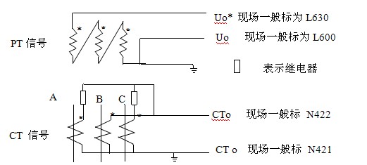 a ) PT信號采用開口三角形接線方式,CT信號采用套裝零序CT的方法,且極性面朝上,零序CT二次非極性端接地。如圖 9.2 所示