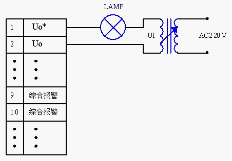 ? 給裝置信號輸入端“Uo*,Uo” 輸入工頻30V~120V之間電壓,此時伴隨燈泡閃爍一次,“單相接地”指示燈亮、綜合報(bào)警接點(diǎn)閉合。當(dāng)輸入信號小于30V時,本裝置不動作。