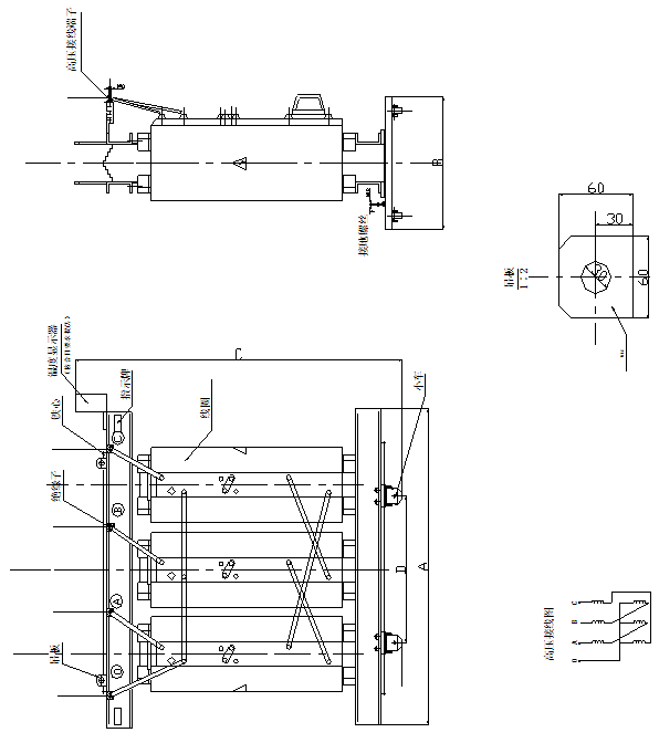 本成套裝置中接地變壓器、有載開關(guān)、消弧線圈、阻尼電阻箱置于高壓場(chǎng)地。中心控制屏內(nèi)含消弧線圈控制器和小電流接地選線裝置(選件),置于主控室。各構(gòu)件的功能和特點(diǎn)如下。