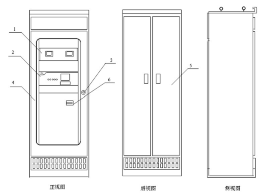 說明:(1)儀表盤 (2)控制器 (3)鎖 (4)玻璃門 (5)后門 (6)空氣開關(guān)您所使用的控制柜外形可能與此不同,應(yīng)以實(shí)物為準(zhǔn)。也有可能雙套裝于一個(gè)柜上,外形圖不再示出。