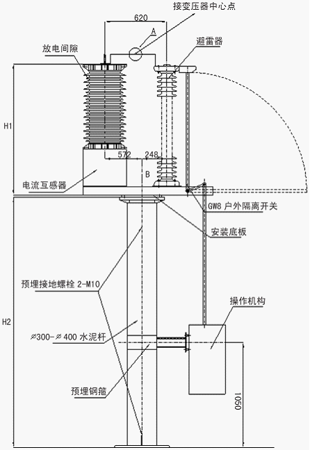 5. 隔離開(kāi)關(guān)的安裝可參照附件GW8系列中性點(diǎn)隔離開(kāi)關(guān)的安裝說(shuō)明進(jìn)行。